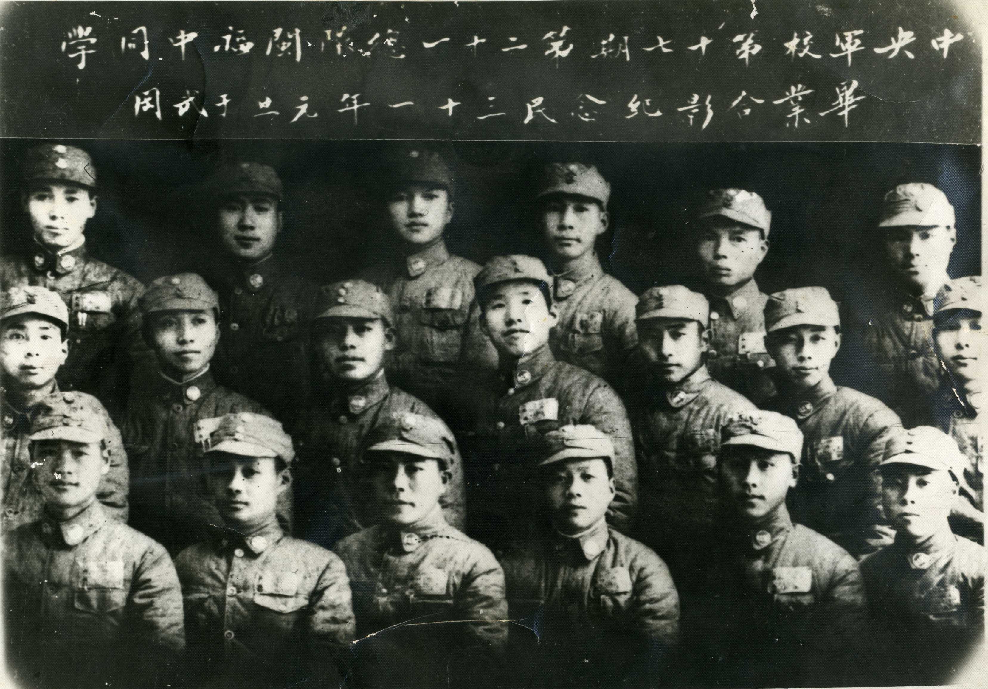 在抗日战争期间,我校许多校友投笔从戎,报效祖国。不少校友在抗敌的战役中相继壮烈牺牲。这张珍贵的照片是1942年我校校友黄埔军校受训毕业,将分配到各战区前的合影留念。
