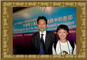 2005年8月,王艳、潘翔龙同学赴泰国参加中泰联合举办的“中国青少年亲善大使眼中的泰国”主题活动